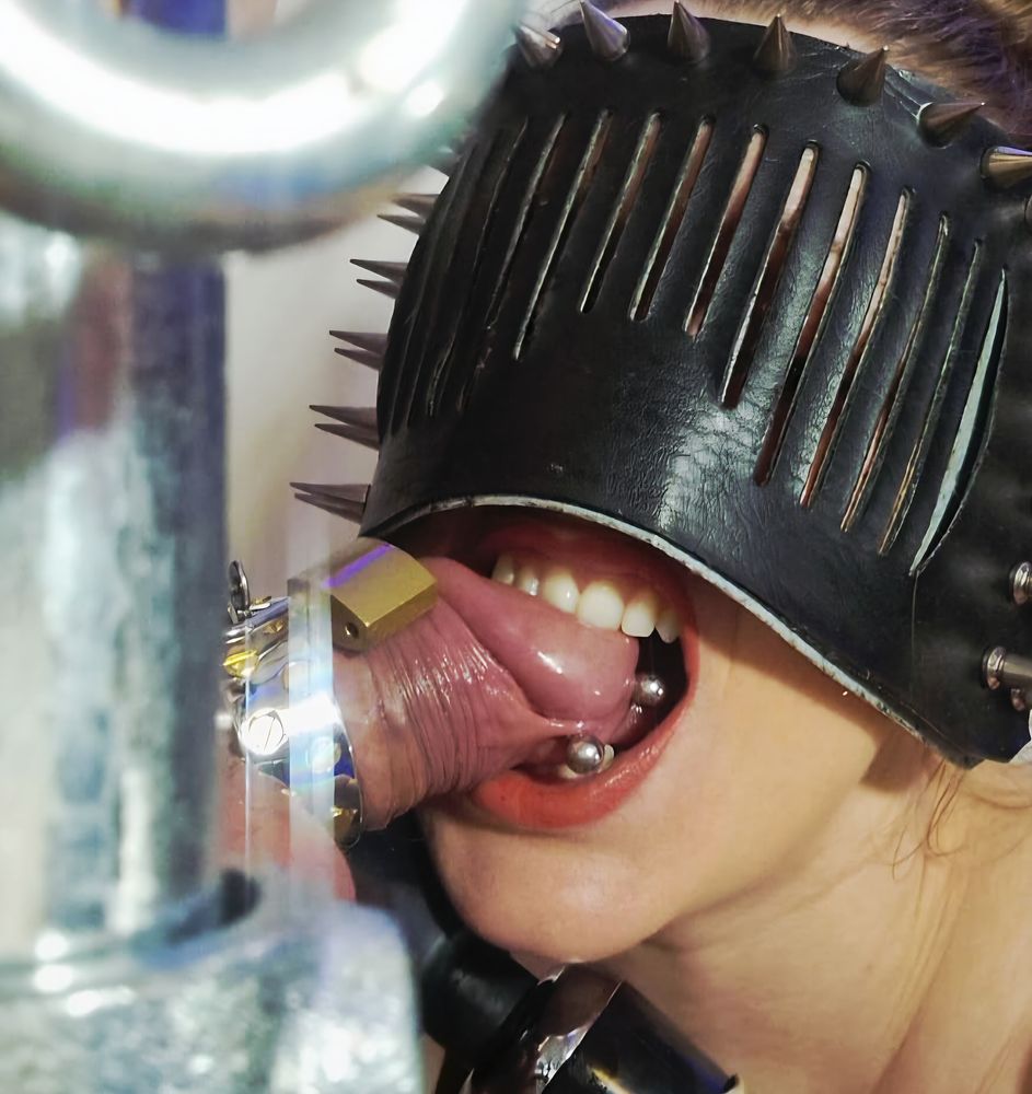1x Kali's Teeth Long Teeth- This toothed cock ring is a steel shackle with spikes pointed inward for erotic sexual denial!