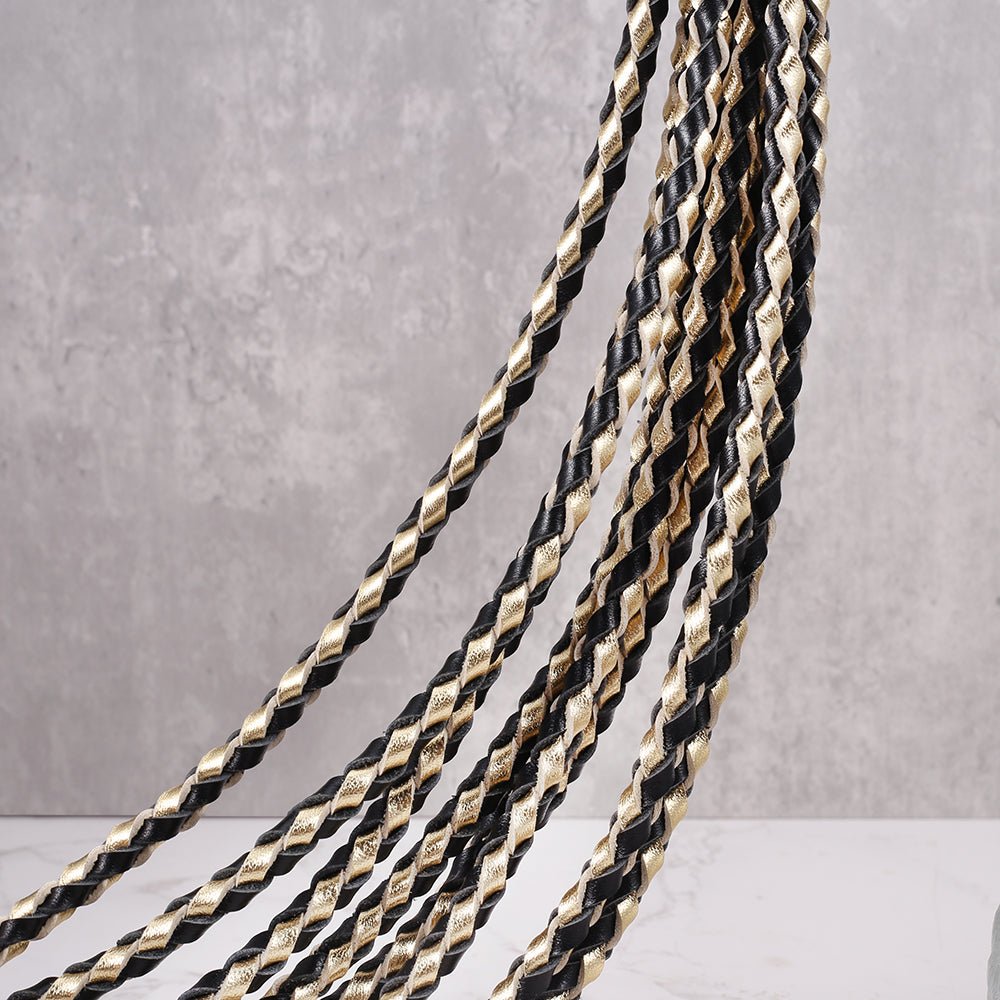Its dual-tone tails—black and gold—create a striking visual arc with every movement, while the weighted tips give each swing a controlled, deliberate impact.