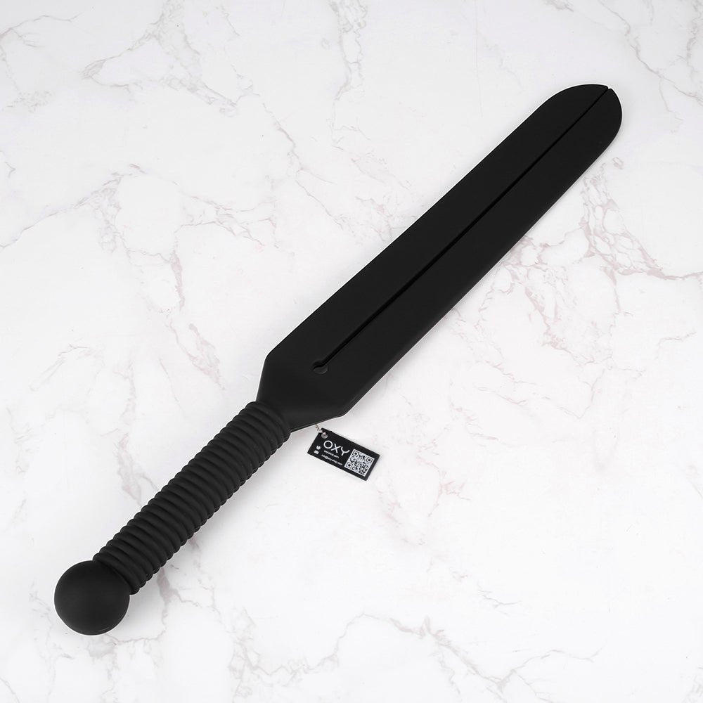 The Silent Authority Paddle is a sleek, minimalist impact toy designed for controlled discipline and deliberate sensation. Its long, flexible blade delivers a sharp, focused sting, while the smooth matte finish keeps every strike clean and intentional.