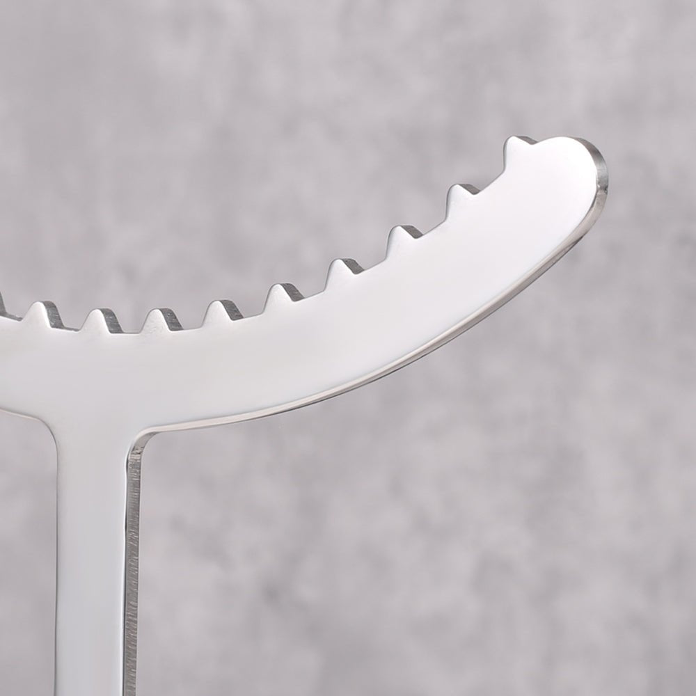 The curved serrated steel arch sits firm against the throat — not to harm, but to communicate. Every tilt of the chin, every lazy slouch, every attempt to look anywhere but straight ahead gets answered the same way: